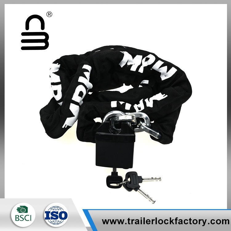 A karcolások megelőzése és a hosszú élettartam fokozása érdekében a kerékpárlánc zárját kemény, kopásálló szövethüvely borítja. A hozzáadott biztonság érdekében a kerékpárlánc zárolása U alakú reteszelő mechanizmussal van felszerelve, más néven U-Lock Hooks, amely megbízható és biztonságos rögzítési módszert kínál.
