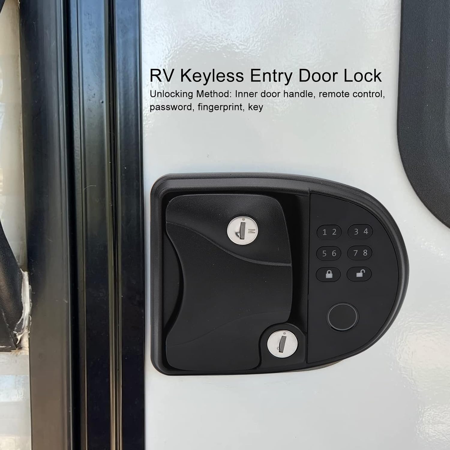 Az ujjlenyomat -lakóautó ajtózárja integrált jelszó -billentyűzetet tartalmaz) Az integrált billentyűzet úgy van kialakítva, hogy több mint 1 millió görgetési kód közül választhasson (tartalmazza a kulcs nélküli fogantyút, az ujjlenyomat -zárat és a mechanikai billentyűt). Soha ne aggódjon a kulcsok elfelejtése vagy elvesztése miatt) és a távirányítás miatt)